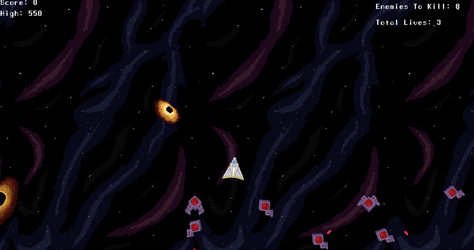 - Three Levels are made with different number of enemies and lives.